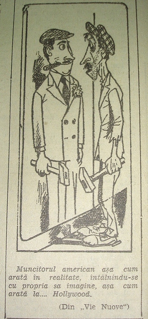 Fig. 26. Text: The American worker as he actually looks like facing his Hollywood image