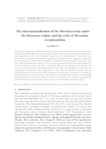 Podvršič Ana: The internationalisation of the Slovenian state under the Eurozone regime and the crisis of Slovenian exceptionalism.