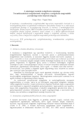 Grőger Nóra; Vágási Mária: A minőséget tanúsító szolgáltatás minősége : terméktanúsítási szolgáltatások vizsgálata a szolgáltató-megrendelő partnerkapcsolat tényezői alapján.