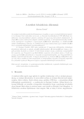 | Befoglaló folyóirat/kiadvány címe: | A területi fejlődés dilemmái |