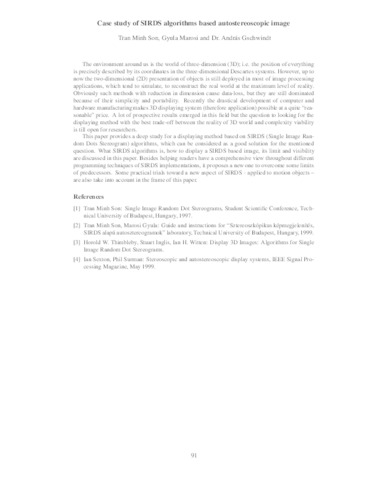 Minh Son Tran; Marosi Gyula; Gschwindt András: Case study of SIRDS algorithms based autostereoscopic image : [abstract].