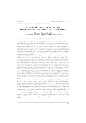 Hamarné Helmeczi Katalin: A tanulási hatékonyság fejlesztése projektmódszerrel a 8. évfolyamos kémiaórákon.