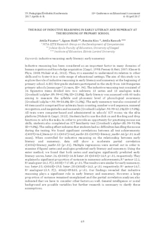 Pásztor Attila; Hódi Ágnes; Kiss Renáta; Rausch Attila: The role of inductive reasoning in early literacy and numeracy at the beginning of primary school.