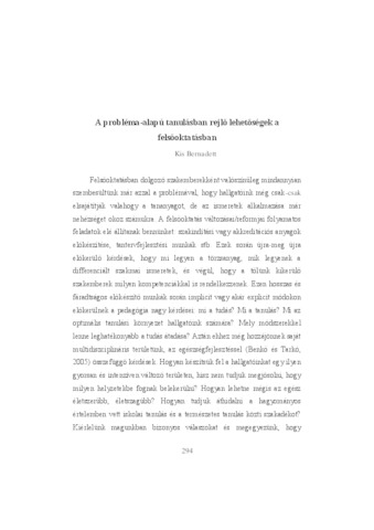 Kis Bernadett: A probléma-alapú tanulásban rejlő lehetőségek a felsőoktatásban. In: „Gyümölcs? A fa beváltja azt, amit virágával ígért." : tanulmányok Benkő Zsuzsanna 60. születésnapjára. pp. 294-308. (2013)
