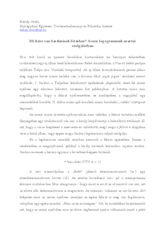 Buhály Attila: Mi köze van Sardurinak Ištarhoz? : asszír logogrammák urartui szolgálatban : [absztrakt].