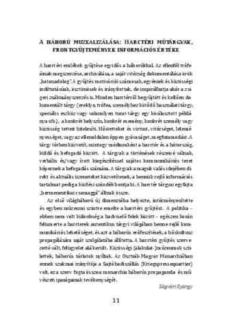 Ságvári György: A háború muzealizálása : harctéri műtárgyak, frontgyűjtemények információs értéke : [absztrakt].