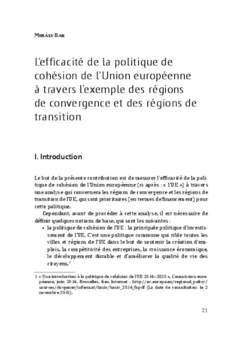 Bak Mihály: L'efficacité de la politique de cohésion de l'Union européenne à travers l’exemple des régions de convergence et des régions de transition. In: Regards nouveaux sur les défis d’avenir, (9). pp. 21-32. (2018)