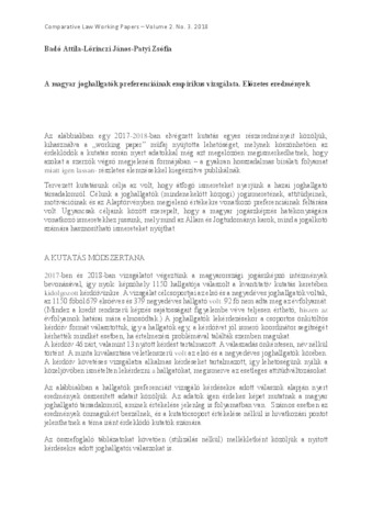 Badó Attila and Patyi Zsófia and Lőrinczi János: A magyar joghallgatók preferenciáinak empirikus vizsgálata : előzetes eredmények. In: Comparative Law Working Papers, (2) 3. pp. 1-42. (2018)
