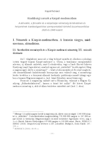 | Kulcsszavak: | Kisebbség - német - Kárpát-medence - 1920-1949, Kisebbségpolitika |