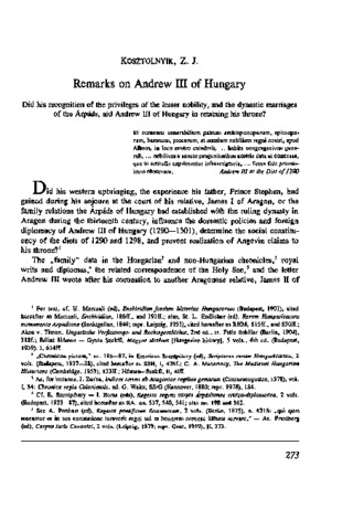 Kosztolnyik Zoltán József: Remarks on Andrew III of Hungary. In: Kelet és nyugat között : történeti tanulmányok Kristó Gyula tiszteletére. pp. 273-290. (1995)