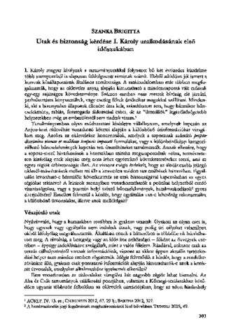 Szanka Brigitta: Utak és biztonság kérdése I. Károly uralkodásának első időszakában.
