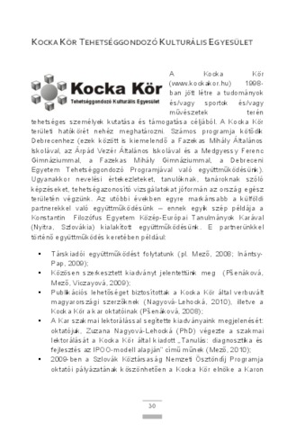 Kocka Kör Tehetséggondozó Kulturális Egyesület. In: Tréningek a tehetséggondozásban. pp. 30-33. (2013)