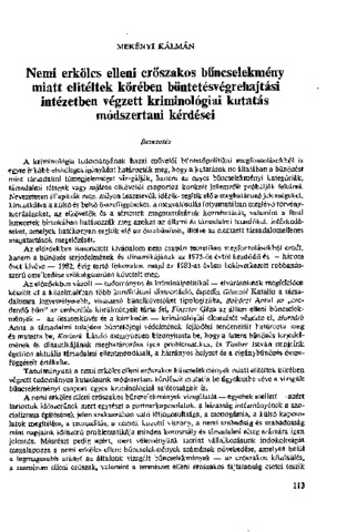 Merényi Kálmán: Nemi erkölcs elleni erőszakos bűncselekmény miatt elítéltek körében büntetésvégrehajtási intézetben végzett kriminológiai kutatás módszertani kérdései. In: Acta Universitatis Szegediensis : acta juridica et politica, (36) 1-20. pp. 113-130. (1986)