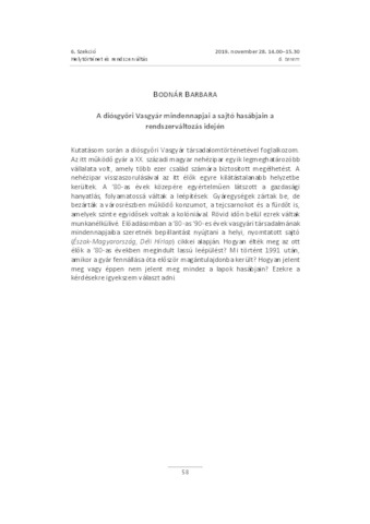 Bodnár Barbara: A diósgyőri Vasgyár mindennapjai a sajtó hasábjain a rendszerváltozás idején : [absztrakt].