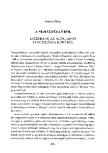 Somlai Péter: A nemzedékekről : dilemmák az általános szociológia köréből. In: A szociológia szemüvegén keresztül : tanulmányok Feleky Gábor 60. születésnapjára. pp. 299-302. (2012)