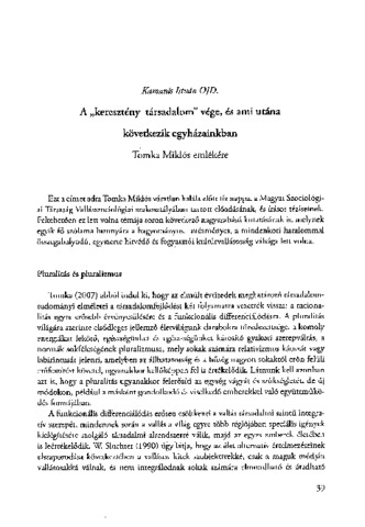 Kamarás István: A "keresztény társadalom" vége, és ami utána következik egyházainkban Tomka Miklós emlékére. In: Vallás a keresztény társadalom után : tanulmányok Tomka Miklós emlékére. pp. 39-53. (2012)