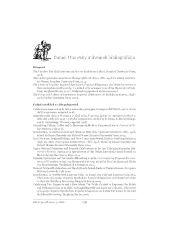 Daniel Unowsky műveinek bibliográfiája. In: Aetas, (34) 3. pp. 139-141. (2019)