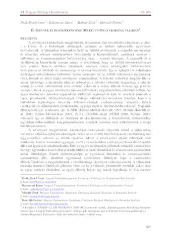 Deák József Áron; Rakonczai János; Molnár Zsolt; Horváth Ferenc: Élőhelyek klímaérzékenysége Délkelet-Magyarország tájaiban.