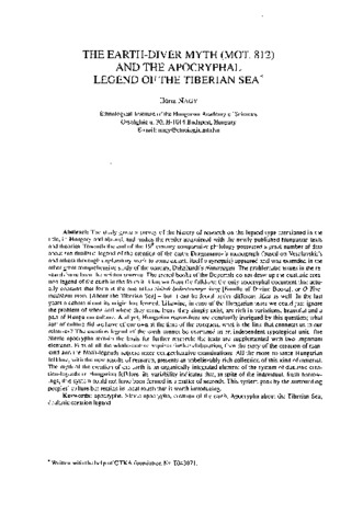 Nagy Ilona: The Earth-diver myth (Mod. 812) and the apocryphal legend of the Tiberian sea. In: Religion, tradition, culture, (18). pp. 55-100. (2007)