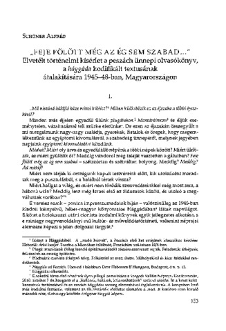 Schőner Alfréd: "Feje fölött még az ég sem szabad..." : elvetélt történelmi kísérlet a peszách ünnepi olvasókönyv, a hággáda kodifikált textusának átalakítására 1945-48-ban, Magyarországon. In: Vallás, közösség, identitás, (31). pp. 153-162. (2012)