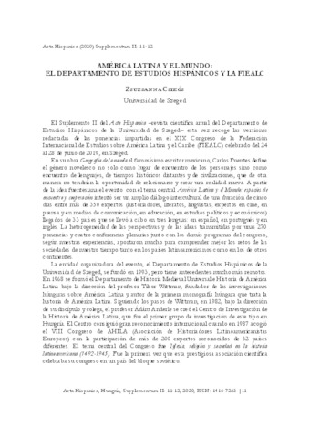 Csikós Zsuzsanna: Prólogo - América Latina y el mundo : el Departamento de Estudios Hispánicos y la FIEALC. In: Acta hispanica. pp. 11-12. (2020)