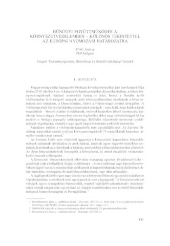 Törő Andrea: Bűnügyi együttműködés a környezetvédelemben : különös tekintettel az Európai Nyomozási Határozatra. In: Természeti és ipari katasztrófák. pp. 143-160. (2012)