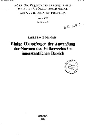 AUSz: Acta Juridica et Politica Tomus XXX. Fasciculus 2. (1983)