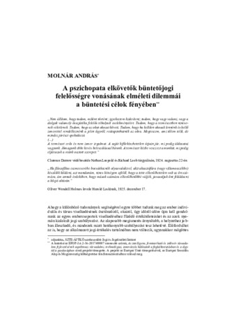 | Egyéb cím: | The theoretical dilemmas of the criminal liability of psychopathic offenders in the light of the purposes of punishment |