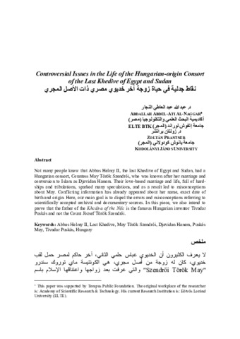 Al-Naggar Abdallah Abdel-Ati; Prantner Zoltán: Controversial issues in the life of the Hungarian-origin consort of the last Khedive of Egypt and Sudan. In: Mediterrán tanulmányok, (32). pp. 99-120. (2022)