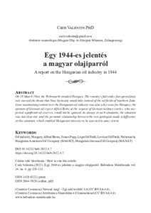 Cseh Valentin: Egy 1944-es jelentés a magyar olajiparról = A report on the Hungarian oil industry in 1944. In: Belvedere Meridionale, (34) 4. pp. 119-133. (2022)
