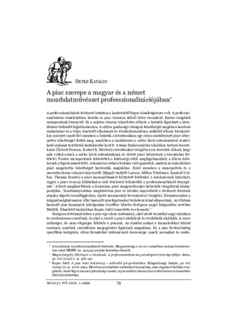 Detre Katalin: A piac szerepe a magyar és a német mozdulatművészet professzionalizációjában. In: Aetas, (37) 1. pp. 74-92. (2022)