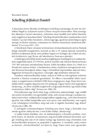 Kelemen János: Schelling felfedezi Dantét. In: Dante-emlékkönyv 2021 : tanulmányok Dante halálának 700. évfordulója alkalmából. pp. 253-257. (2022)