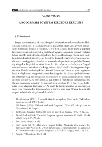| Kulcsszavak: | Egyetemtörténet - Kolozsvár, Egyetemtörténet - Szeged |