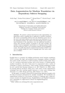 Nagy Attila; Lakatos Dorina Petra; Barta Botond; Nanys Patrick; Ács Judit: Data augmentation for machine translation via dependency subtree swapping.