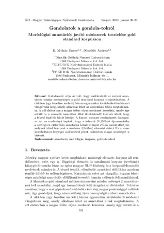 K. Molnár Emese; Dömötör Andrea: Gondolatok a gondola-tokról : morfológiai annotációt javító módszerek tesztelése gold standard korpuszon.