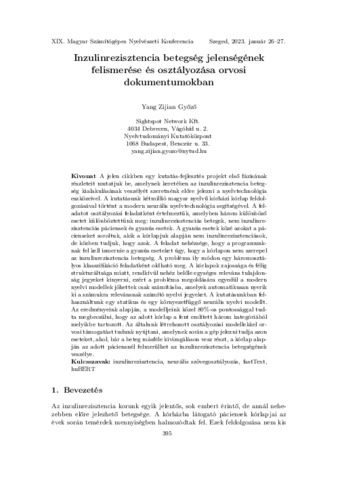 Yang Zijian Győző: Inzulinrezisztencia betegség jelenségének felismerése és osztályozása orvosi dokumentumokban.