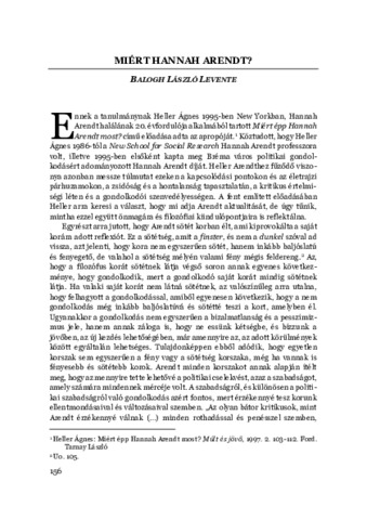 Balogh László Levente: Miért Hannah Arendt? In: A vita : Heller Ágnes emlékére, (19). pp. 156-166. (2022)