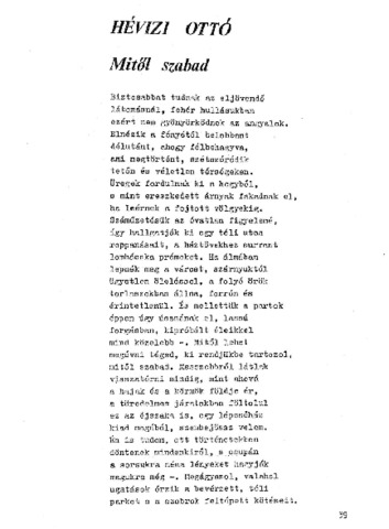 Hévizi Ottó: Mitől szabad ; az epilógus tágassága ; Egy néhai poéta idézése : [versek]. In: Harmadkor 5. pp. 39-41. (1986)