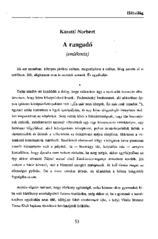 Kanetti Norbert: A rangadó : emlékmás. In: Hétvilág 7. pp. 53-71. (1993)