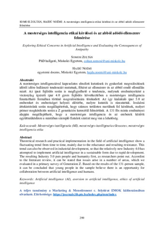 Somosi Zoltán; Hajdú Noémi: A mesterséges intelligencia etikai kérdései és az abból adódó ellenszenv felmérése = Exploring ethical concerns in artificial intelligence and evaluating the consequences of antipathy : [absztrakt].