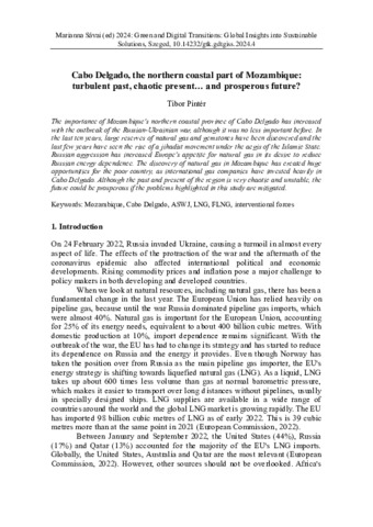 The importance of Mozambique's northern coastal province of Cabo Delgado has increased with the outbreak of the Russian-Ukrainian war, although it was no less important before. In the last ten years, large reserves of natural gas and gemstones have been discovered and the last few years have seen the rise of a jihadist movement under the aegis of the Islamic State. Russian aggression has increased Europe's appetite for natural gas in its desire to reduce Russian energy dependence. The discovery of natural gas in Mozambique has created huge opportunities for the poor country, as international gas companies have invested heavily in Cabo Delgado. Although the past and present of the region is very chaotic and unstable, the future could be prosperous if the problems highlighted in this study are mitigated.
