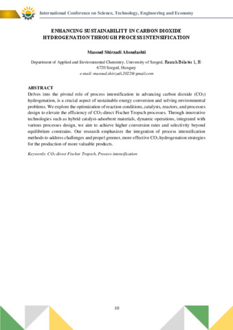 Ahoudashti Masoud Shirzadi: Enhancing sustainability in carbon dioxide hydrogenation through process intensification : [abstract].