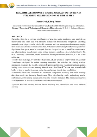 Colak Burak; Farkas Károly: RealTime-AT: improved online anomaly detection in streaming multidimensional time series : [abstract].