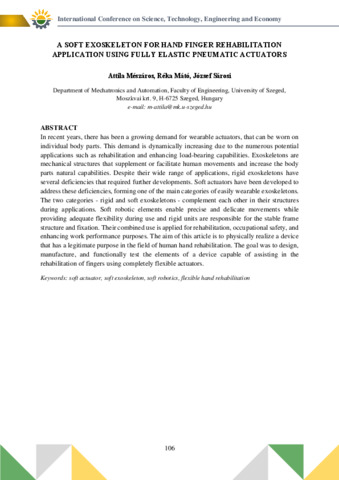 | Befoglaló folyóirat/kiadvány címe: | International Conference on Science, Technology, Engineering and Economy |