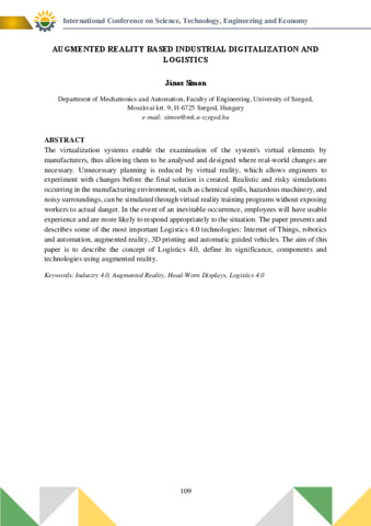 Simon János: Augmented reality based industrial digitalization and logistics : [abstract].