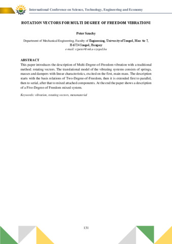 | Befoglaló folyóirat/kiadvány címe: | International Conference on Science, Technology, Engineering and Economy |