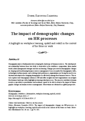 Dobre Eleonora Casandra: The impact of demographic changes on HR processes : a highlight on workplace learning, upskill and reskill in the context of the future or work. In: Belvedere Meridionale, (36) 1. pp. 91-101. (2024)