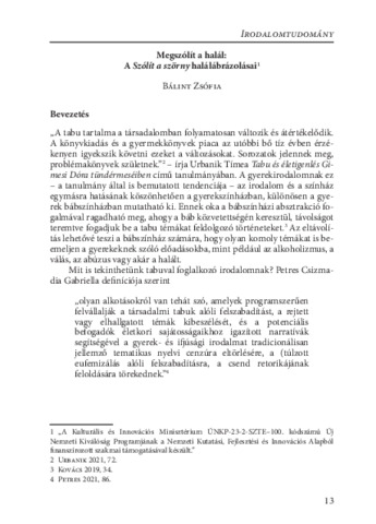 Bálint Zsófia: Megszólít a halál: A Szólít a szörny halálábrázolásai. In: Móra Akadémia : szakkollégiumi tanulmánykötet 13., (13). pp. 13-22. (2024)