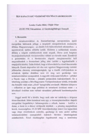 Lovász Csaba Máté; Uhljár Péter: Kis kapacitású vízerőművek Magyarországon.