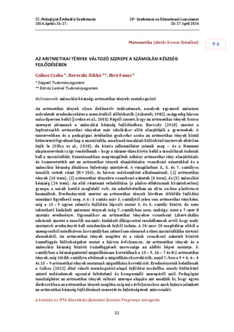 Csíkos Csaba; Bereczki Ildikó; Biró Fanni: Az aritmetikai tények változó szerepe a számolási készség fejlődésében : [absztrakt].